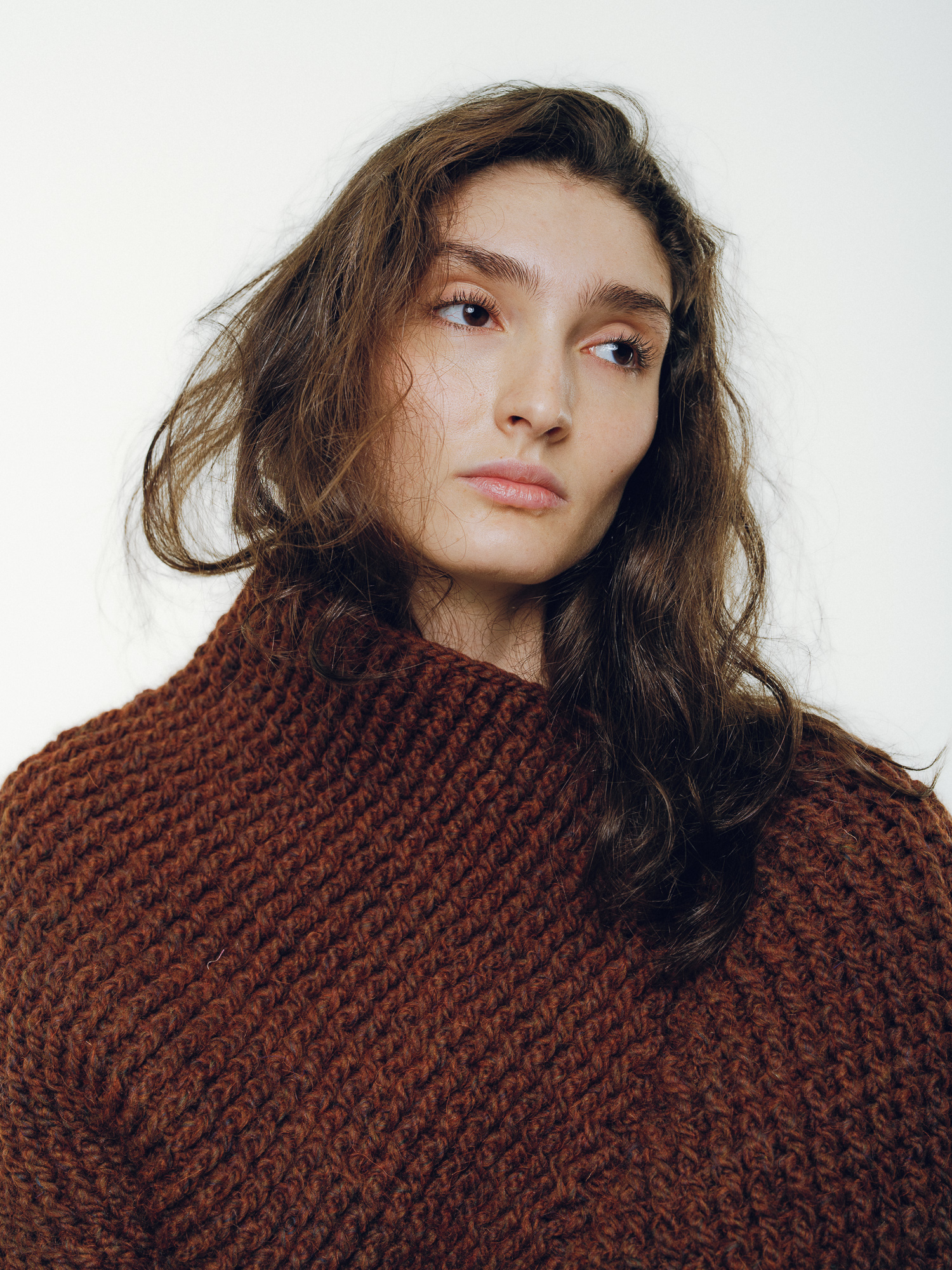 The yarn features a natural melange effect, enhancing the depth and texture of the knit structure.